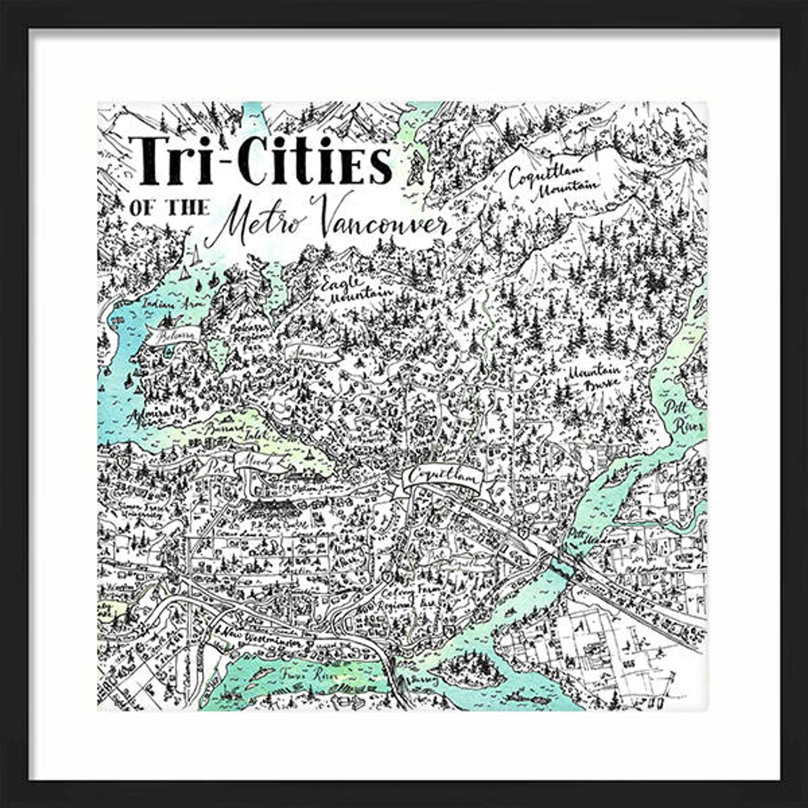 Tri Cities, BC Map Watercolour Print – Elena Markelova